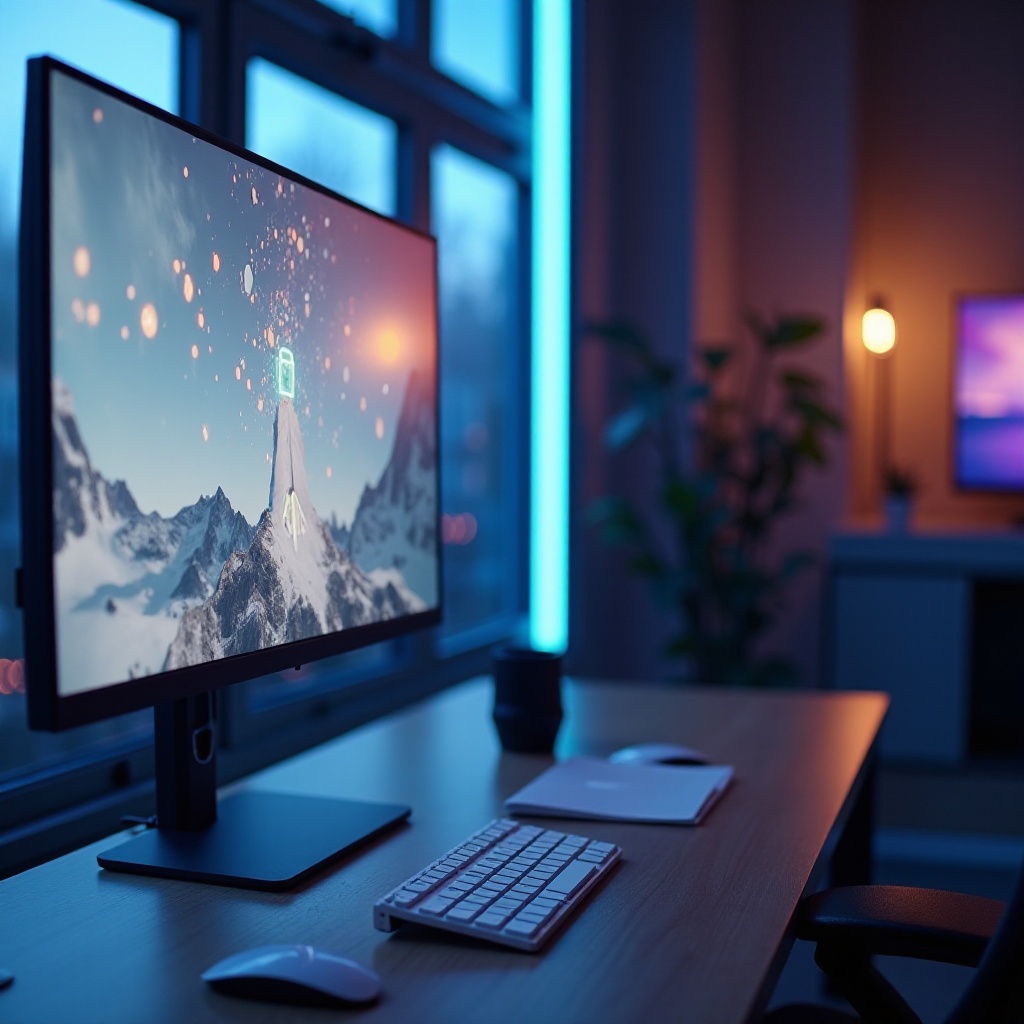 흰색 모니터에 잘 어울리는 주변 조명을 고려하세요. 모니터 뒤에 편향 조명을 설치하면 눈 피로를 줄이고 시각적 대비를 향상시켜 게임 경험을 높입니다. -