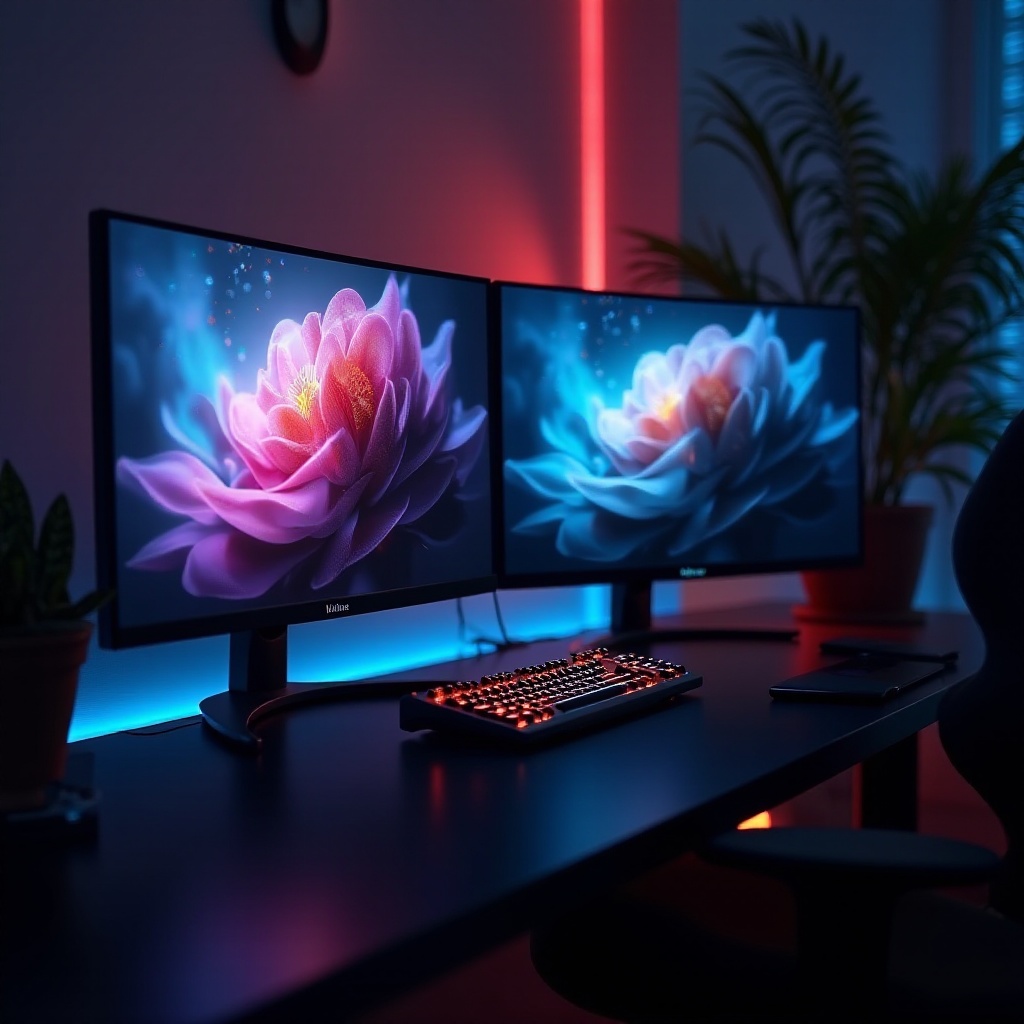 Çift 4K monitör konfigürasyonları sağlam ve yetenekli donanım gerektirir. 7680×2160 birleşik çözünürlüğü, bu ekranları destekleyebilecek çıkışlar ile birlikte HDMI 2.0 veya DisplayPort 1.4 tipik olarak, önemli ölçüde işlem gücü ve VRAM gerektirir. Bu kaynakları verimli bir şekilde kullanmak, görevlerin yavaşlatmadan sorunsuz şekilde tamamlanmasını sağlamak için işlem hızı ve GPU mimarisinin dengelenmesini gerektirir.